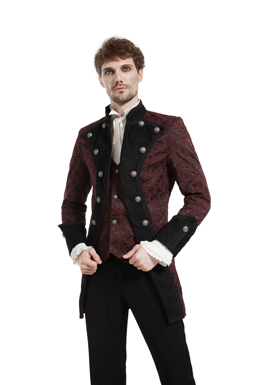 Veste aristocrate, en velours sur les extrémités tout en brocart pour le reste, elle possède également un gilet intégré.