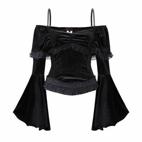 Votre avis sur : Top gothique en velours extensible à épaules dénudées, manches évasées